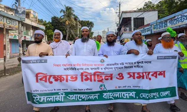 বাংলাদেশ ইসলামী আন্দোলন মেহেরপুর জেলা শাখার উদ্যোগে বিক্ষোভ মিছিল ও সমাবেশ অনুষ্ঠিত হয়েছে। আজ শুক্রবার বিকেল ৫টার দিকে এ কর্মসূচি অনুষ্ঠিত হয়।