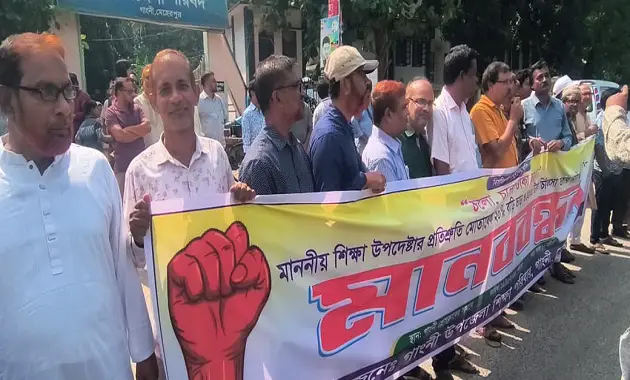 মেহেরপুরের গাংনীতে বেসরকারি শিক্ষক-কর্মচারীদের ২০% বাড়িভাড়া ও ১,৫০০ টাকা চিকিৎসা ভাতার দাবিতে মানববন্ধন অনুষ্ঠিত হয়েছে।